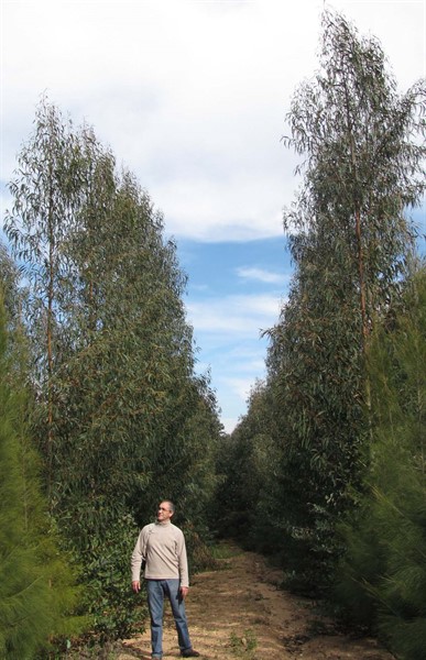 Se trata del eucalipto urograndis, un híbrido resultado del cruce de eucalipto grandis y eucaliptos urophylla, ambos originarios de Australia pero muy usados en Brasil y que no produce semillas fértiles. Esta especie de hoja perenne se caracteriza por su alta resistencia a muchas enfermedades y su rápido crecimiento, sobre todo durante primavera y otoño, llegando a alcanzar unos 12 metros en tres años.