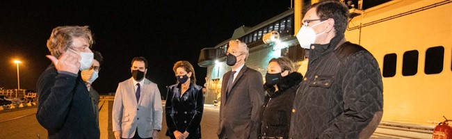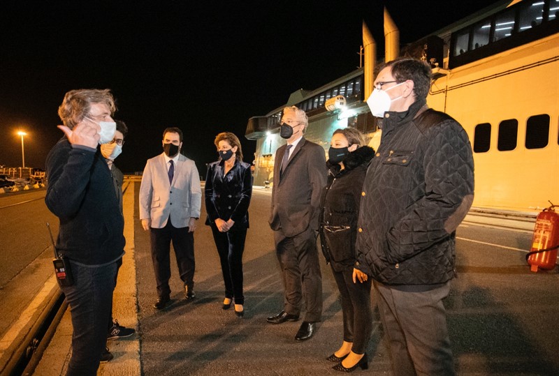 Miranda visita el ferry rápido 'Eleanor Roosevelt' de Baleària en escala técnica en Huelva para hacer 'bunkering' de GNL