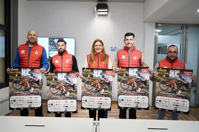 Valverde del Camino abre el próximo domingo, 26 de enero, el Campeonato de España de Cross Country 2025, con la primera prueba del calendario que se desarrollará en el trazado de ‘Cabecito Pelao’. La prueba, puntuable también para el Campeonato de Andalucía, se ha presentado hoy en la Diputación de Huelva con la presencia del vicepresidente de la Diputación, Manuel Cayuela; la alcaldesa de Valverde del Camino, Syra Senra; y el presidente del Motoclub Valverdeño, Ángel Quiñones.