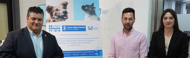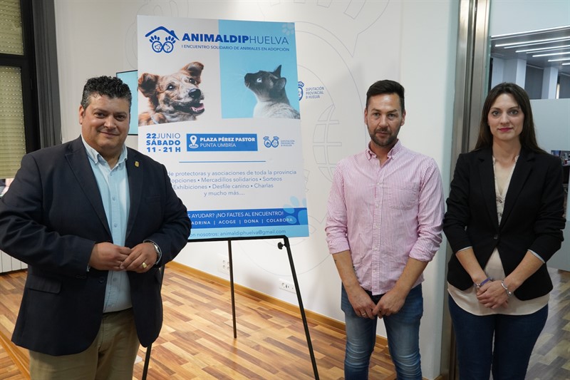 La Diputación de Huelva, a través del Servicio de Medio Ambiente, Desarrollo Rural y Energía, ha organizado el I Encuentro solidario de animales en adopción ‘AnimalDiphuelva’, que se celebrará este sábado, 22 de junio, a partir de las 11:00 horas y hasta las 21:00 horas, en la Plaza Pérez Pastor de Punta Umbría.