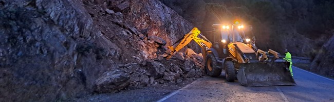 El Servicio de Carreteras de la Diputación actúa de urgencia en un desprendimiento en la carretera HU-6106 en Nerva