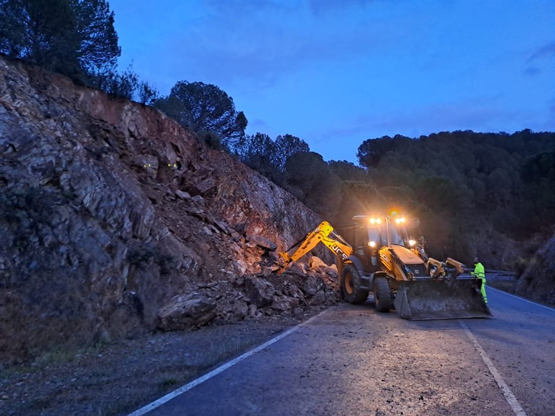 Tras la actuación urgente de los operarios y maquinarias del Servicio de Carreteras de la Diputación, la vía quedó de nuevo totalmente abierta al tráfico al final de la tarde, si bien la zona del desprendimiento quedó señalizada, en previsión de que pudieran repetirse nuevos deslizamientos en este punto. Durante la mañana de hoy, y en los próximos días, el Servicio de Carreteras tiene previsto actuar con una máquina de mayor tonelaje para retirar los materiales acumulados en la parte más alta del talud.