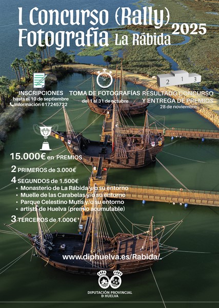 La Diputación de Huelva, a través de la Unidad de Gestión de La Rábida, ha convocado el I Rally fotográfico ‘La Rábida 2025’ con el objetivo de potenciar la sensibilidad actual por el cuidado y la conservación del patrimonio histórico-artístico y el medio natural del entorno de La Rábida, desde el punto de vista añadido de sus valores estéticos, a través de la mirada de los artistas gráficos. El concurso, que está abierto a todos los fotógrafos, tanto profesionales como aficionados, repartirá 15.000 euros en premios.