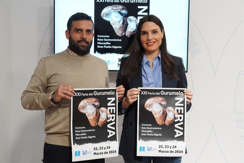 La diputada provincial de Turismo, Ana Delgado, ha presentado hoy junto al concejal nervense, Francisco Javier Granados, la vigésimo primera edición de la Feria del Gurumelo de Nerva, que se celebra del 22 al 24 de marzo en esta localidad de la Cuenca Minera Onubense.