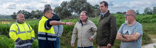 El presidente de la Diputación, David Toscano, visita a los vecinos afectados por inundaciones en Gibraleón, Trigueros y Niebla e inspecciona, junto al personal técnico, la presa del Calabazar, que “desagua con normalidad” pero se mantiene bajo estrecha vigilancia
