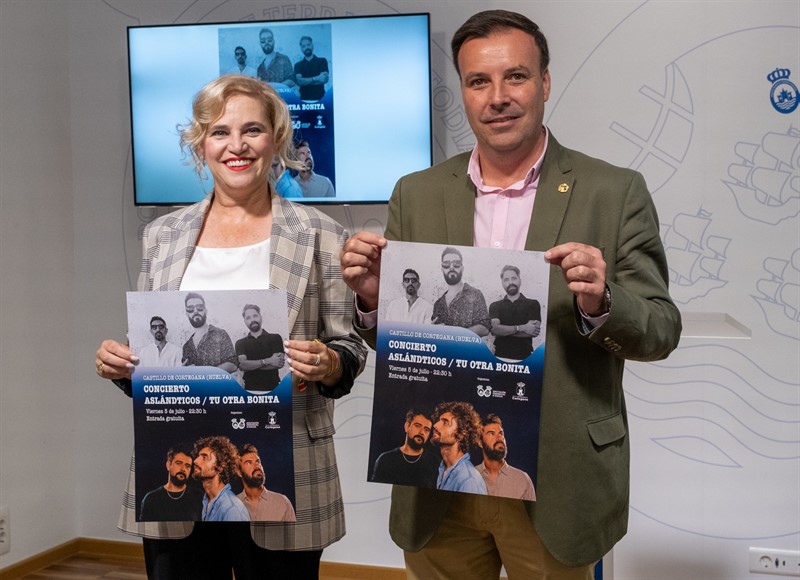 La Diputación de Huelva y el Ayuntamiento de Cortegana han organizado un concierto de las bandas musicales Aslándticos y Tu Otra Bonita el 5 de julio, a partir de las 22:30 horas, en el Castillo de la localidad serrana, con entrada libre hasta completar aforo. Así lo ha presentado hoy la diputada de Cultura, Gracia Baquero, acompañada por el diputado de Reto Demográfico, José Carlos Roda.