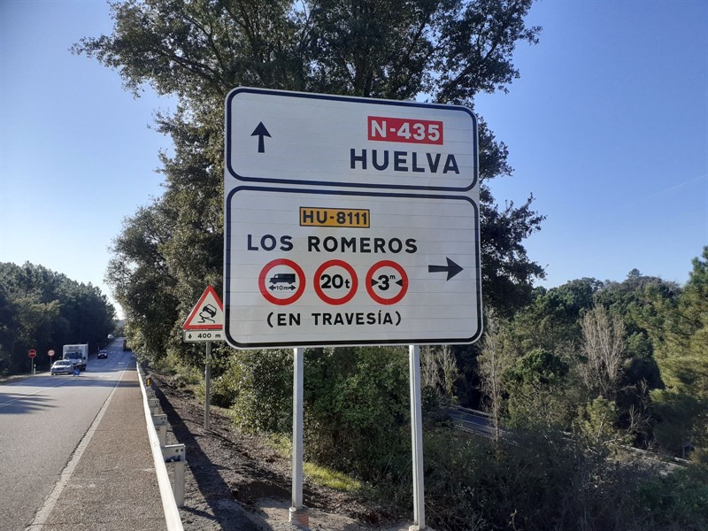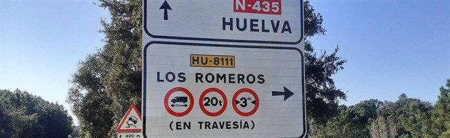 La Diputación de Huelva ha diseñado y fabricado las señales de tráfico para limitar el paso de vehículos pesados por la carretera provincial que une la aldea de Los Romeros (Jabugo) con las carreteras nacionales 435 y 433. Con la instalación de estas señales, antes del acceso a la HU-8109 y HU-8111, se da respuesta a una antigua petición del ayuntamiento de Jabugo, quien solicitó hace unos meses a la Diputación de Huelva el diseño y la colocación de estas señales que se ha hecho posible gracias a la colaboración de las diferentes administraciones.