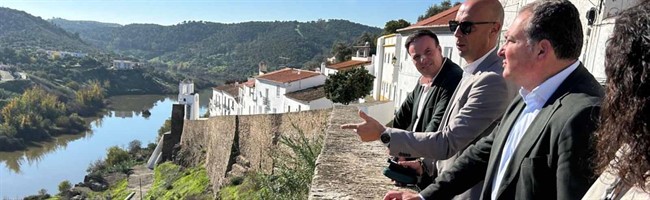 David Toscano visita la localidad portuguesa, en la que avanza en proyectos de materias como despoblación, gestión del agua y río Guadiana, economia azul, geoparque transfronterizo, agricultura y seca del encinar, sector de la caza, territorios mineros de frontera o festivales islámicos