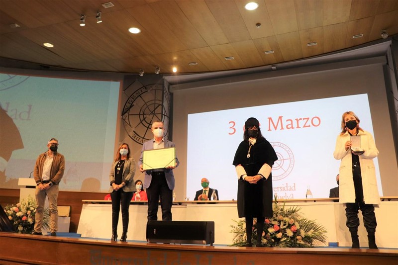 Uno de los momentos más emotivos y representativos de este especial 3 de Marzo ha sido la imposición de las Medallas de la UHU, concedidas este año, de un lado, a Miguel Palacios, por “su gran gestión y compromiso en su etapa de presidente del Consejo Social de la Onubense”, y, de otro, la Medalla de al UHU a todo un colectivo, el que forma el personal que trabaja en los centros sanitarios de la provincia, por su incansable trabajo e implicación para atender a las personas durante toda la pandemia.