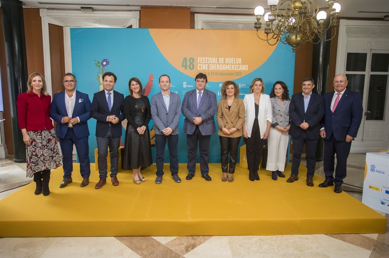 El director del Festival de Huelva ha presentado los detalles de la 48 edición acompañado por el alcalde de la ciudad y presidente de la Fundación del Festival de Cine Iberoamericano, Gabriel Cruz; la presidenta de la Diputación Provincial de Huelva, María Eugenia Limón; y la delegada territorial de Cultura y Patrimonio Histórico de la Junta de Andalucía en Huelva, Teresa Herrera.