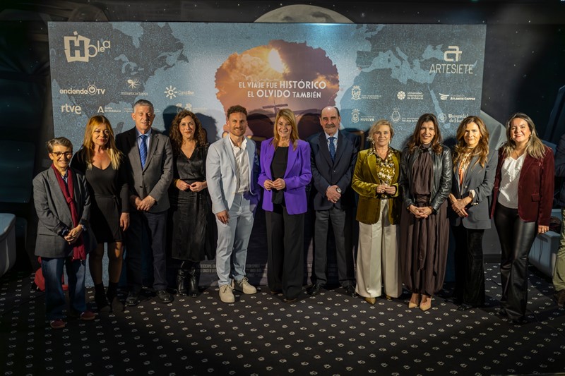 El acto ha contado con la asistencia del director de la obra, Elías Pérez; su productora, Agus Jiménez, quienes han estado acompañados de la alcaldesa de Huelva, Pilar Miranda; el senador Carmelo Romero; el parlamentario andaluz, Rafael Segovia; la delegada territorial de Cultura de la Junta de Andalucía en Huelva, Teresa Herrera; el vicepresidente de la Diputación de Huelva, Manuel Cayuela; la diputada de Cultura de la Diputación de Huelva, Gracia Baquero; la alcaldesa de San Juan del Puerto, Rocío Cárdenas; la vicerrectora de Proyección Universitaria de la Universidad de Huelva, Joaquina Castillo; la directora de la Fundación Atlantic Copper, Ángeles Sánchez Cueca; la directora de la sede de La Rábida de la UNIA, María de la O Barroso, la gerente del centro comercial Holea, Lucía Guisado; así como otros representantes de las instituciones y entidades patrocinadoras de la película documental, y del equipo de la película, como los actores Xavi Caudevilla, Ignacio de la Puerta, Pablo Béjar, Paco Márquez, Vicente Vergara, Dani Mantero, Jacinto Bobo y Rafael Romero.