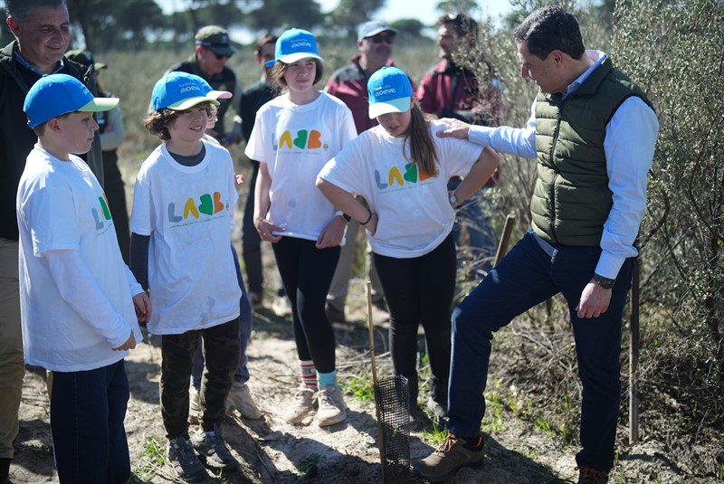 La Fundación Moeve ha participado hoy en un acto con el presidente de la Junta de Andalucía, Juanma Moreno, y un grupo de jóvenes para la plantación de árboles en el paraje de 'Las Peñuelas', dentro del Espacio Natural de Doñana, donde un incendio en el verano de 2017 arrasó más de 10.000 hectáreas.